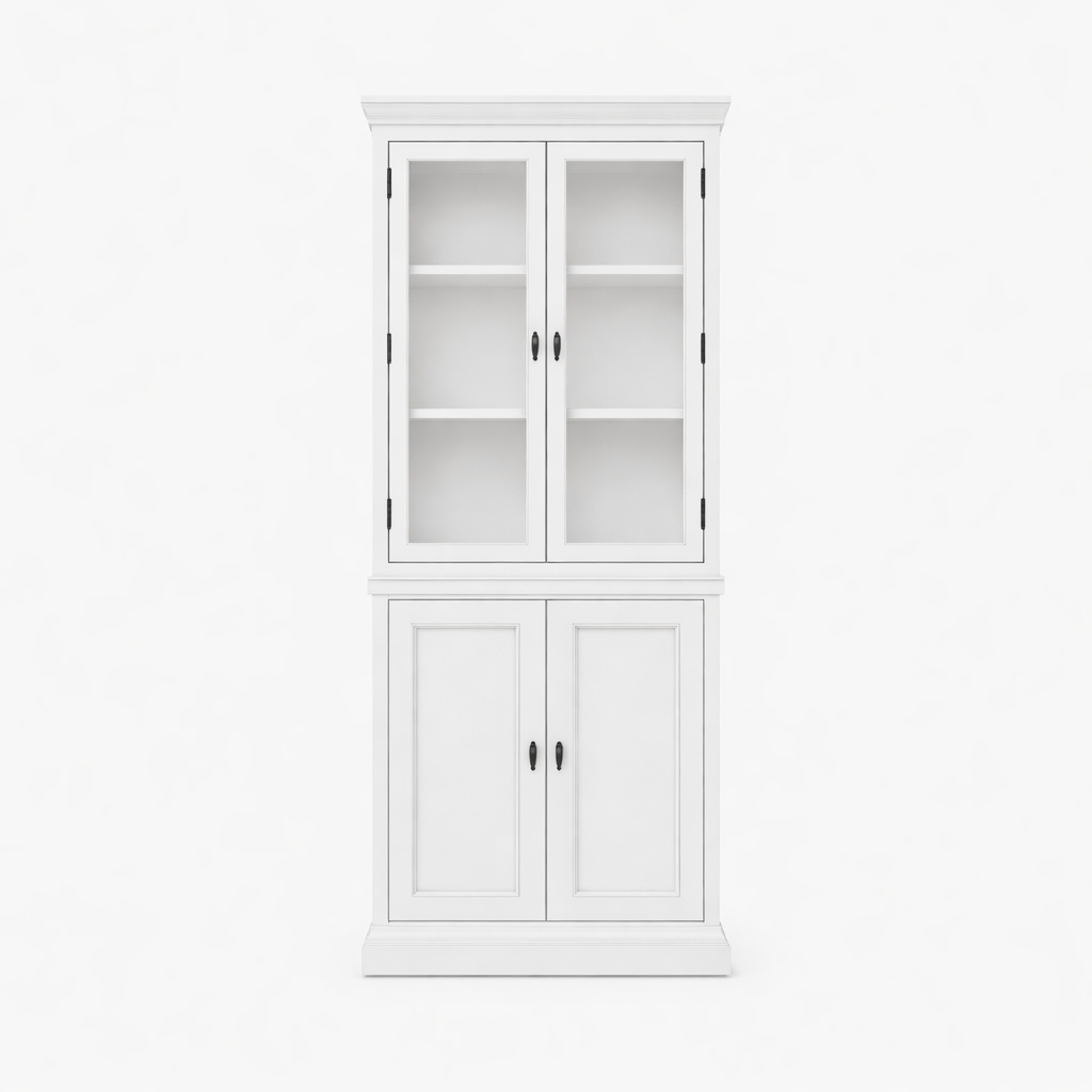 Buffetkast Alaska 02 - 100x48x225H cm - zwarte greepjes - dichte deuren - 2 glazen deuren