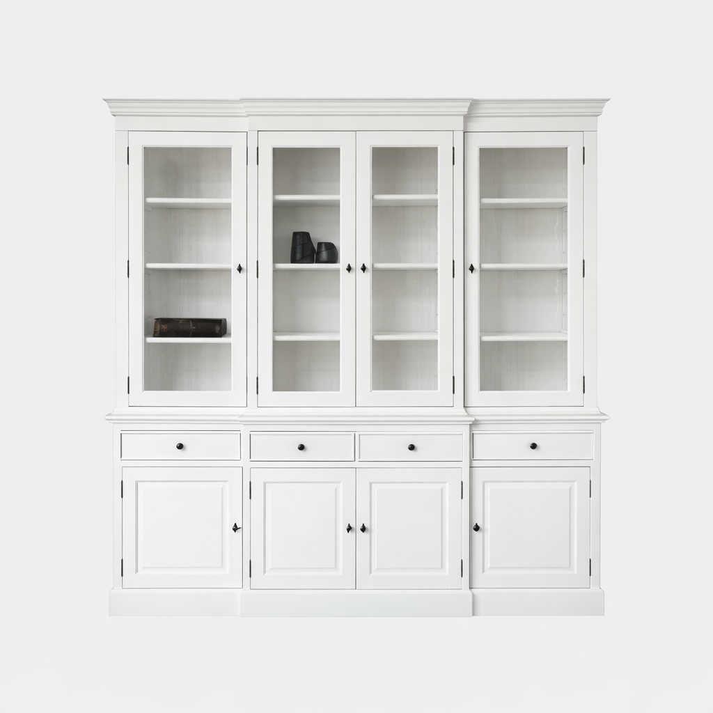 Buffetkast Breakfront - 220x50x220H cm - 4 vitrinedeuren - 4 soft close lades - 4 dichte deuren - met verspringing