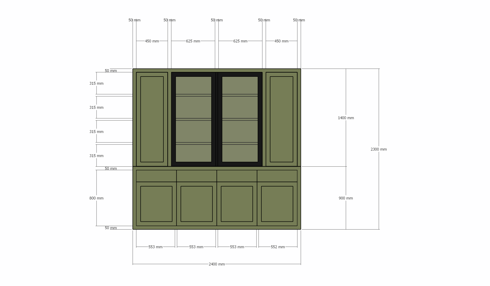 De Buffetkast Formia is een perfecte combinatie van modern design, functionaliteit en maatwerk. Met zijn royale afmetingen van 240 cm breed, 50 cm diep en 230 cm hoog biedt deze kast een indrukwekkende aanwezigheid in elke ruimte, zonder massief of log aan te voelen.