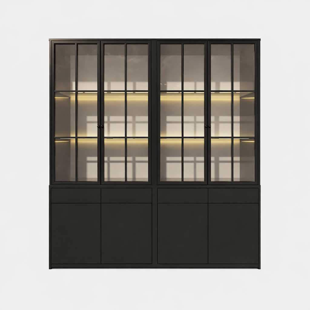 Buffet/vitrinekast Gibraltar - 240x50x225H cm - stalen deuren - standaard ZONDER verlichting