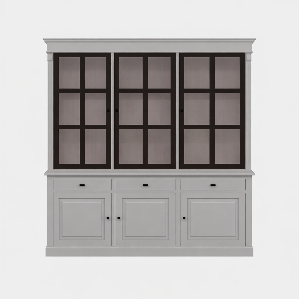 Buffetkast Montana 03 - 200x46x220H cm - 3 stalen deuren - strak design - zwarte greepjes - 3 soft close lades