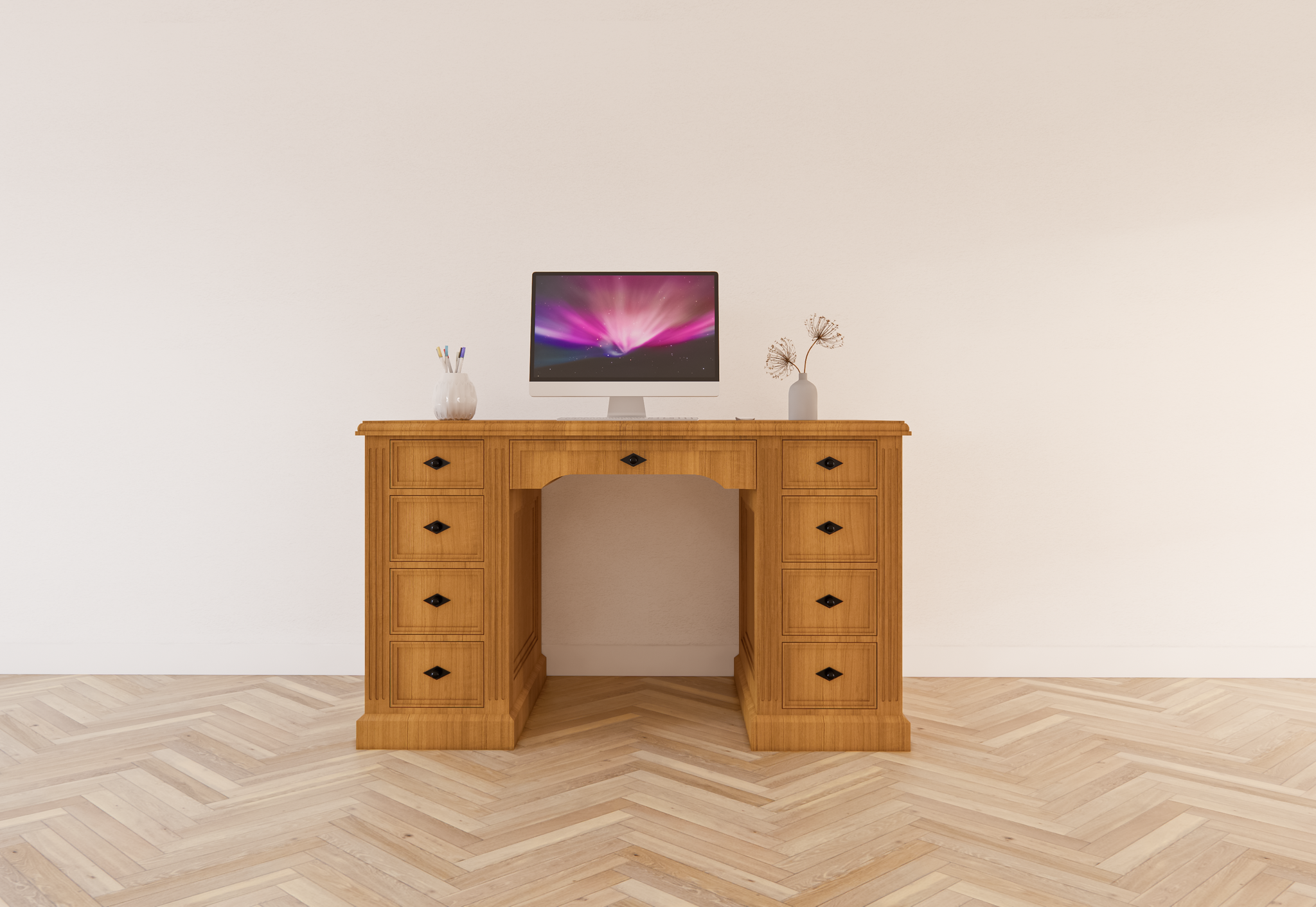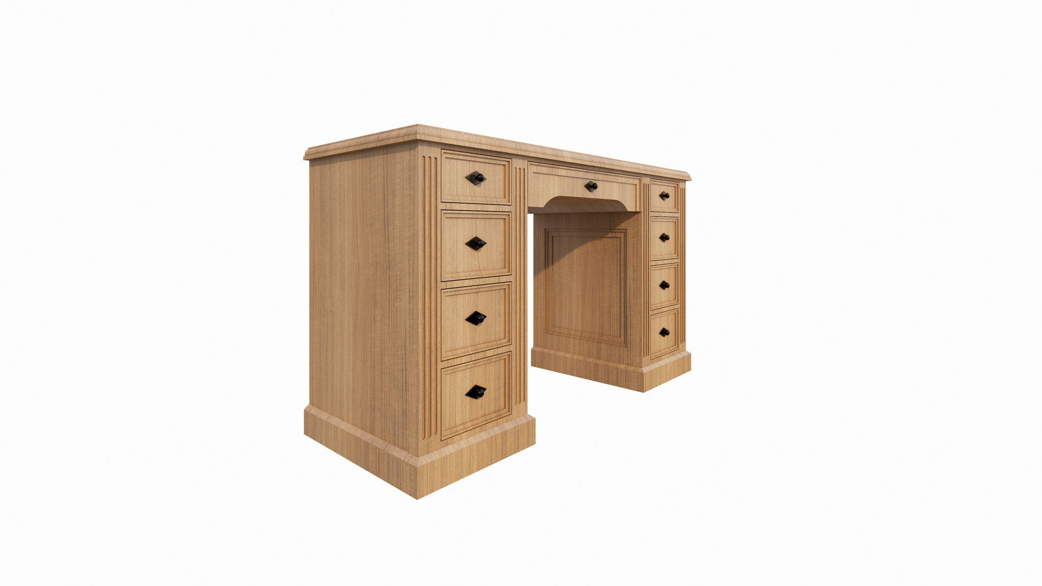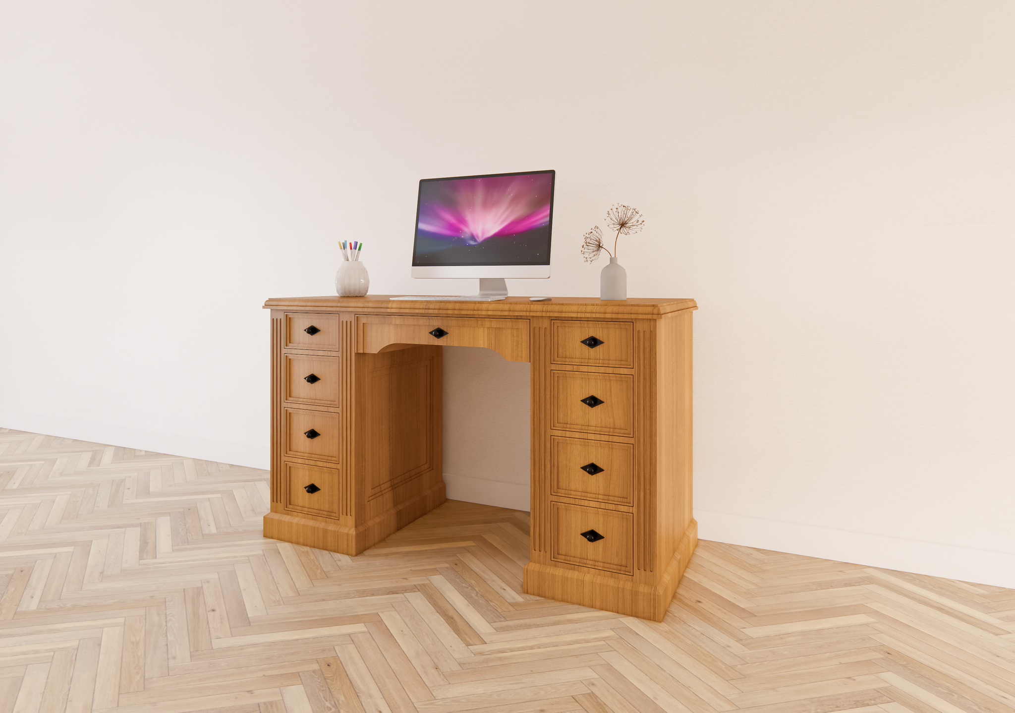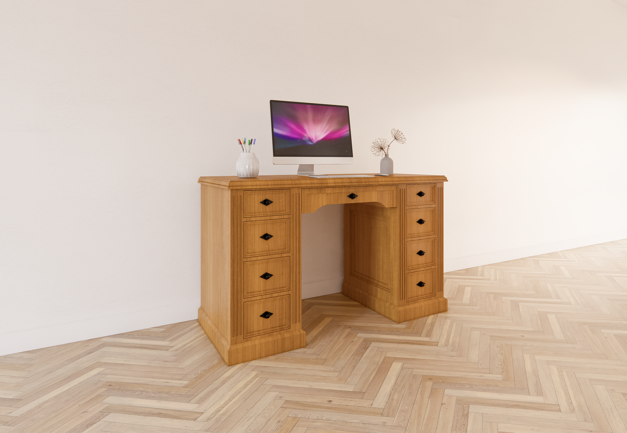Het bureau Mersin is een stijlvol, klassiek meubel met een landelijke uitstraling. Gemaakt van hoogwaardig eikenhout, straalt dit bureau warmte, kwaliteit en vakmanschap uit. De verfijnde sierlijsten, het stevige onderstel en de klassieke grepen geven het bureau zijn karakteristieke, tijdloze uitstraling.