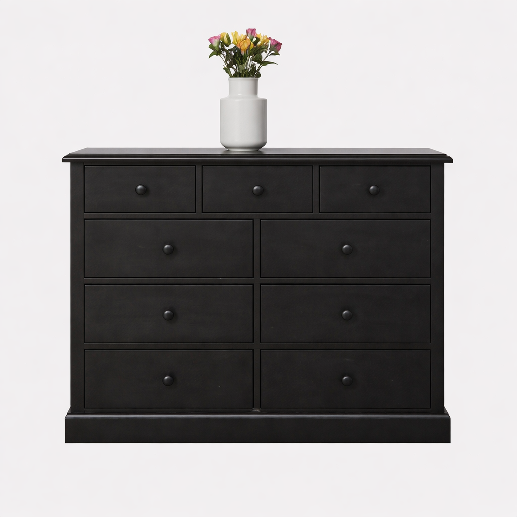 Maak kennis met de stijlvolle Ladekast Naxos! Met een royale afmeting van 120x50x100H cm biedt deze ladekast maar liefst 9 soft close lades, perfect voor al je opbergbehoeften.