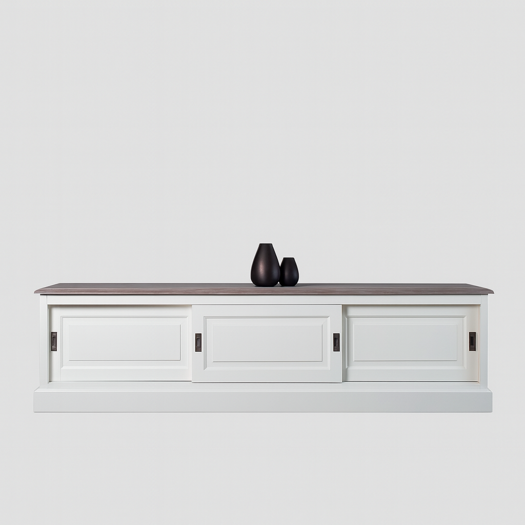 Tv dressoir Lin 05 - 180x50x50H cm - 3 schuifdeuren - met kabelgat - optioneel vergrijsd bovenblad