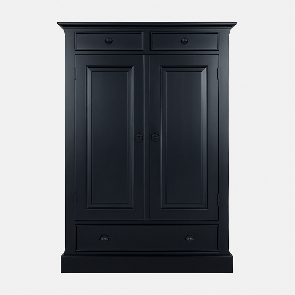 Meidenkast Alicante is een sfeervolle en compacte kast die perfect is voor kleding, linnen en andere spullen. Met 2 kleine lades, 1 grote lade en verstelbare planken achter de 2 deuren biedt deze meidenkast alle praktische gemakken, zonder veel ruimte in te nemen.