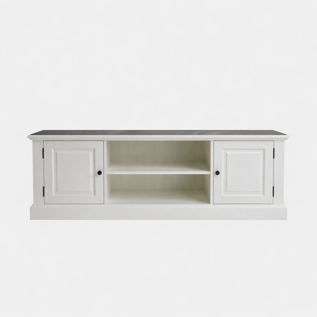 Tv dressoir miss 08 - 180x46x60H cm - 2 dichte scharnierdeuren - open middenvak - met kabelgat