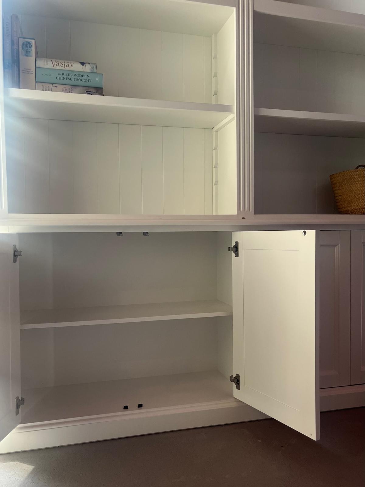 De kast is uitgevoerd met push-to-open deuren en voorzien van verstelbare planken, waardoor je volop flexibiliteit hebt om servies, boeken of decoratieve items stijlvol op te bergen en te presenteren.