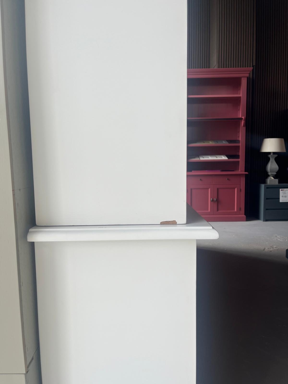 Dit betreft een showroommodel. Aan de rechterkant van de bovenkast is er wat ruimte zichtbaar en zijn er enkele lichte beschadigingen aanwezig. Buiten dat verkeert de kast in goede staat.