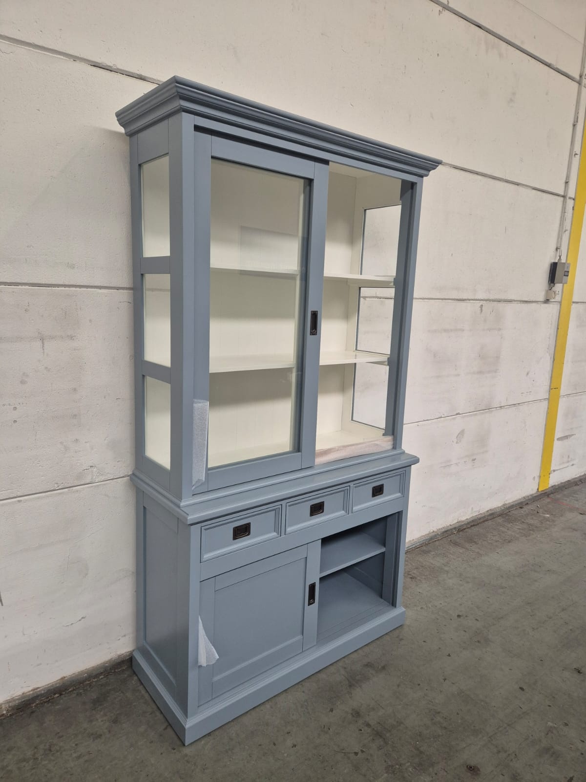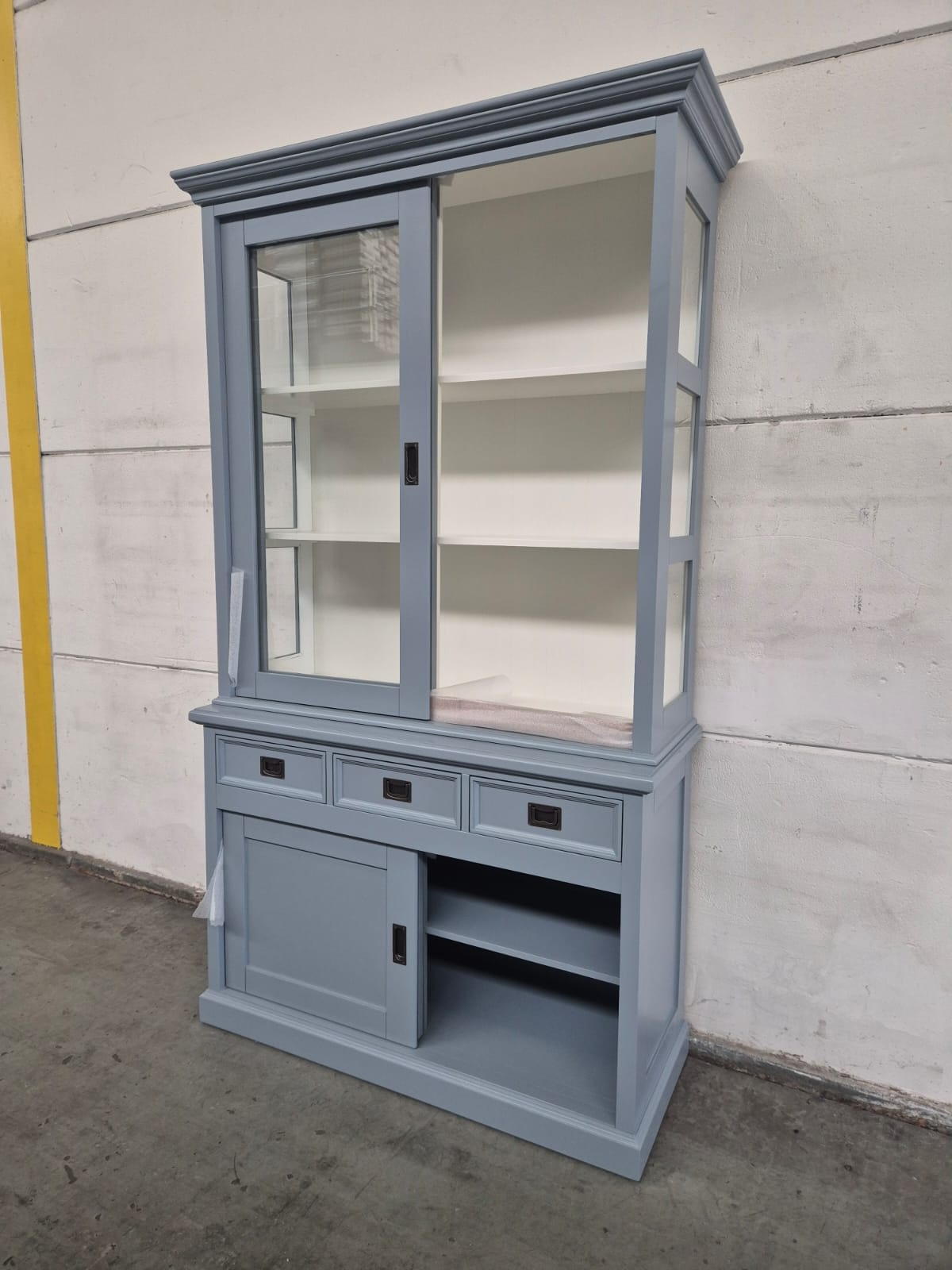 Showmodel Buffetkast Chateau - 125x45x220H cm - 2 vitrine schuifdeuren - 3 soft close lades - 2 dichte schuifdeuren - glazen