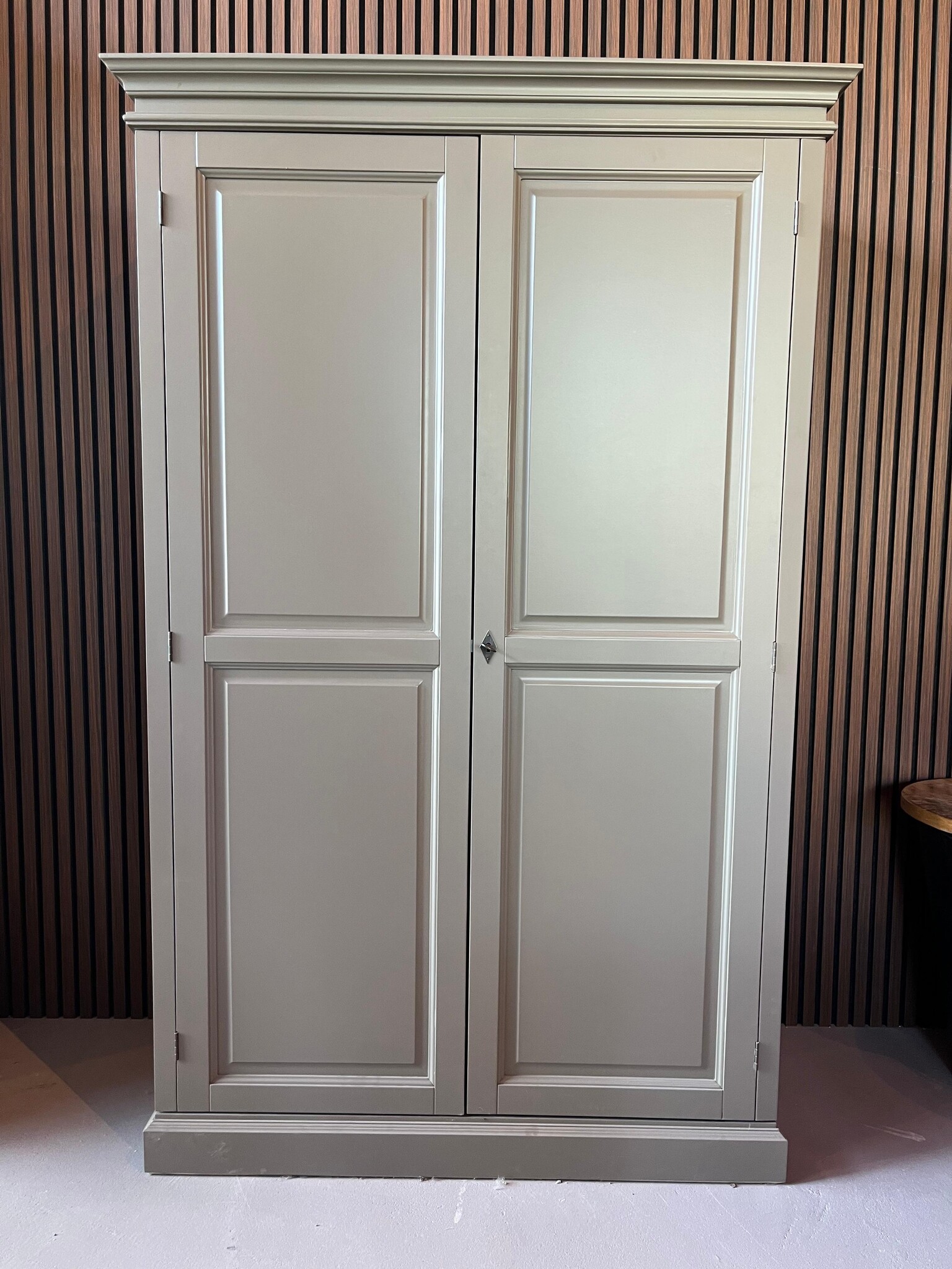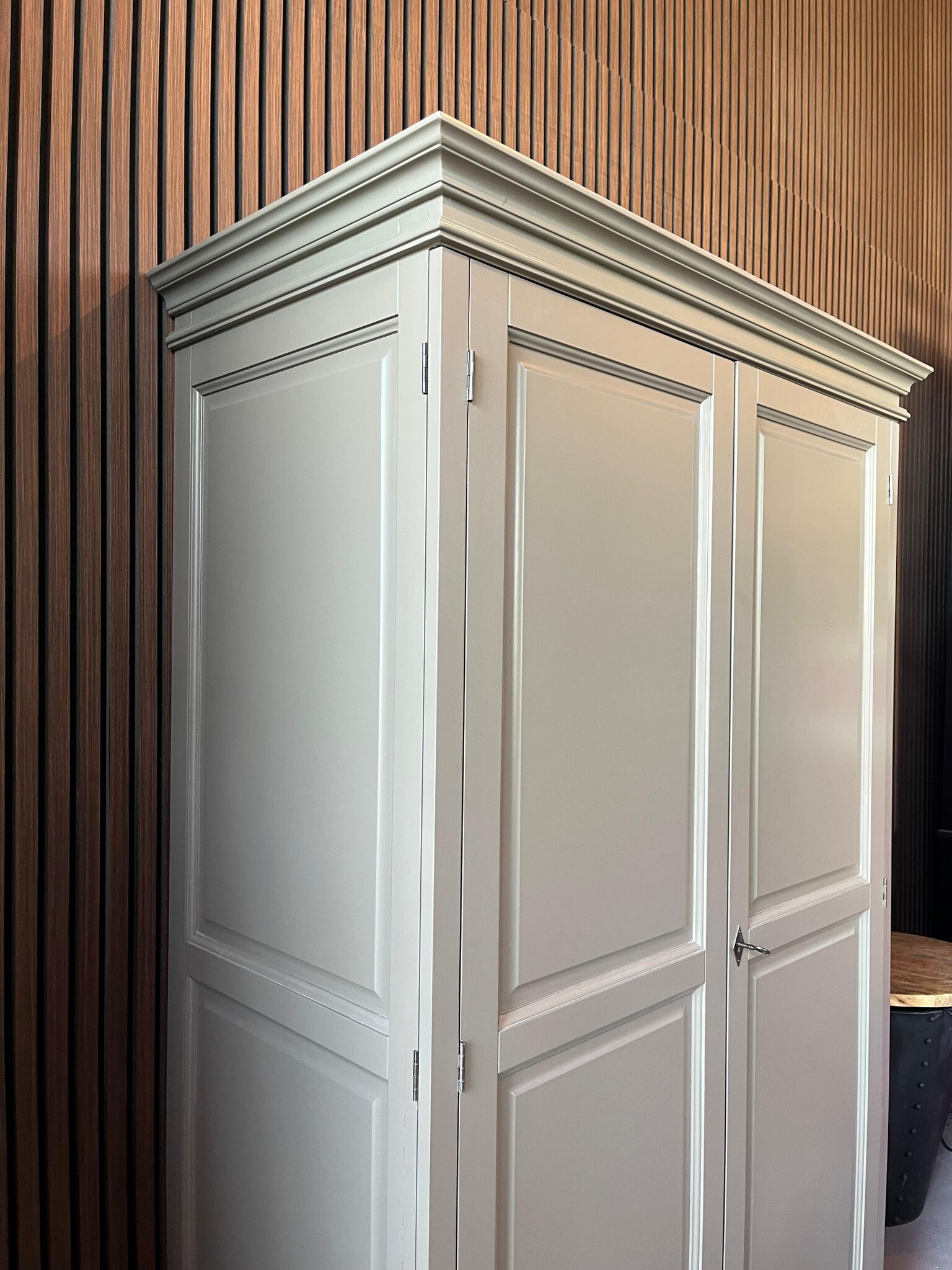 De kast is voorzien van handige scharnierdeuren die volledig plat tegen de zijkanten openklappen. Zo neemt de kast nauwelijks extra ruimte in wanneer de deuren geopend zijn – ideaal voor praktisch gebruik in zowel kleine als grotere ruimtes. Binnenin vind je diverse planken en vakken, perfect voor het opbergen van kantoorartikelen, boeken of accessoires.