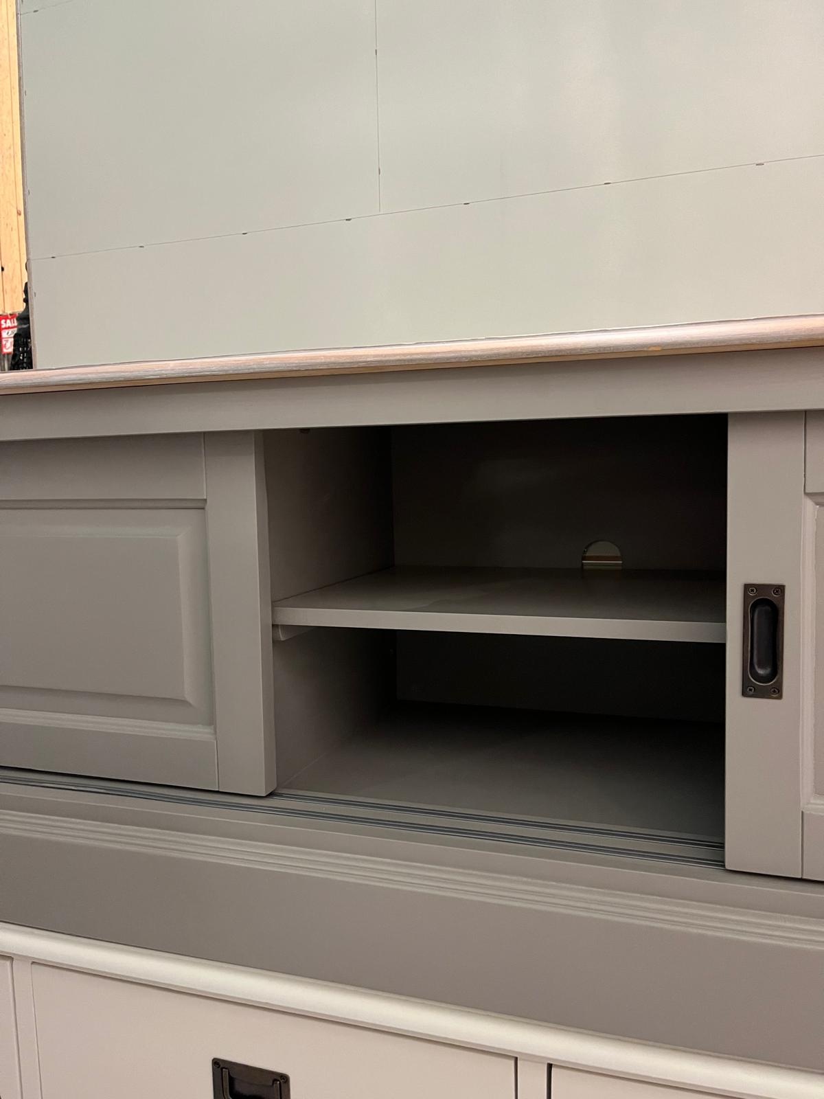 Dankzij de drie schuifdeuren biedt dit dressoir volop opbergruimte voor servies, woonaccessoires of andere benodigdheden, terwijl de bovenkant ruimte geeft voor decoratie of een stijlvolle eyecatcher. Het geheel straalt rust en kwaliteit uit en past moeiteloos in zowel een landelijk als klassiek interieur.