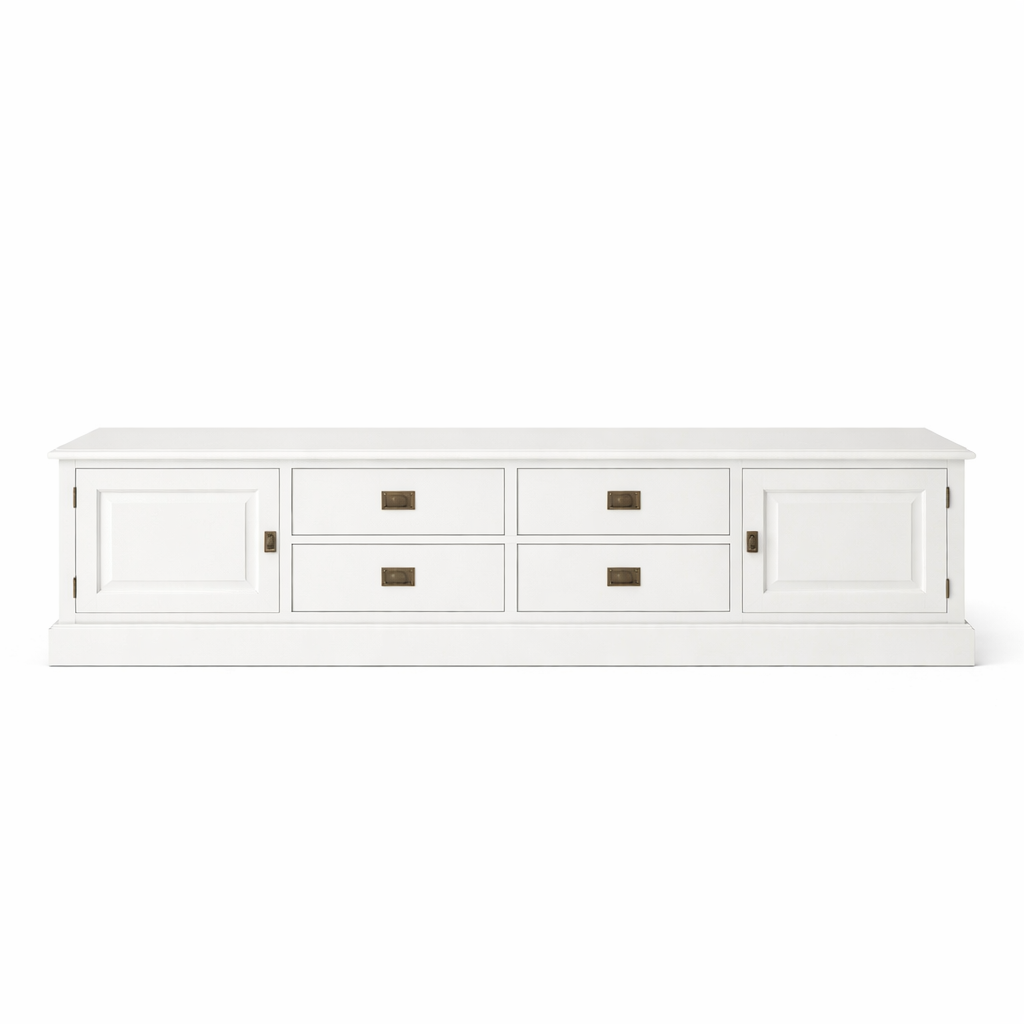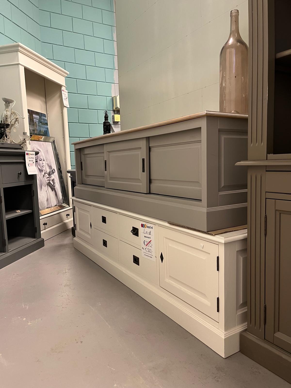 Het Lin 08 dressoir is een stijlvol meubelstuk dat warmte en karakter toevoegt aan ieder interieur. Uitgevoerd in RAL 9001 (crèmewit) en voorzien van sierlijsten en bronskleurig beslag, ademt dit dressoir een klassieke landelijke sfeer. Dankzij de combinatie van lades en scharnierdeuren biedt het meubel volop opbergruimte voor servies, woonaccessoires of andere benodigdheden.