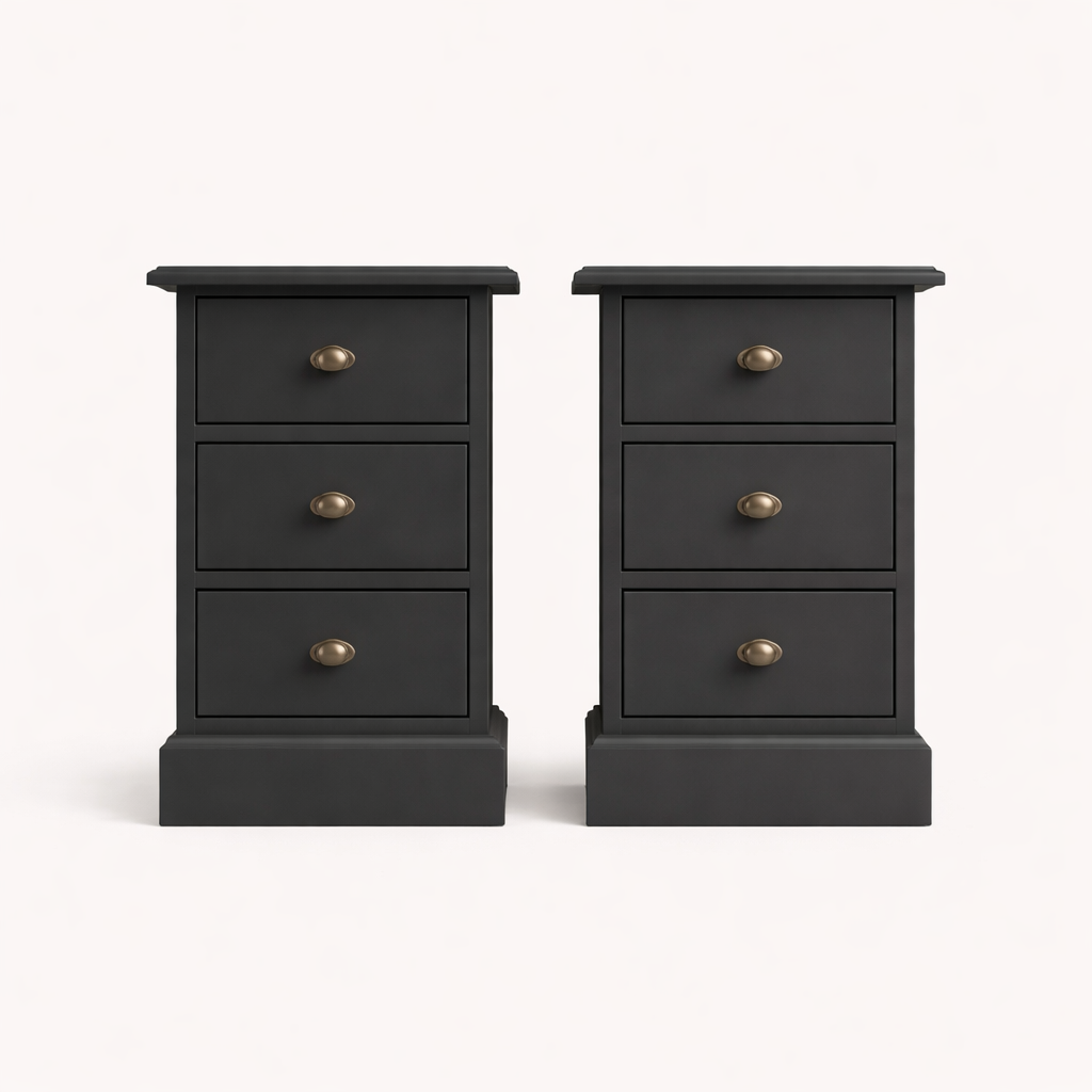 De nachtkastjes zijn volledig gemonteerd en voorzien van drie handige lades, ideaal voor het opbergen van boeken, accessoires of andere spullen die je graag binnen handbereik houdt.