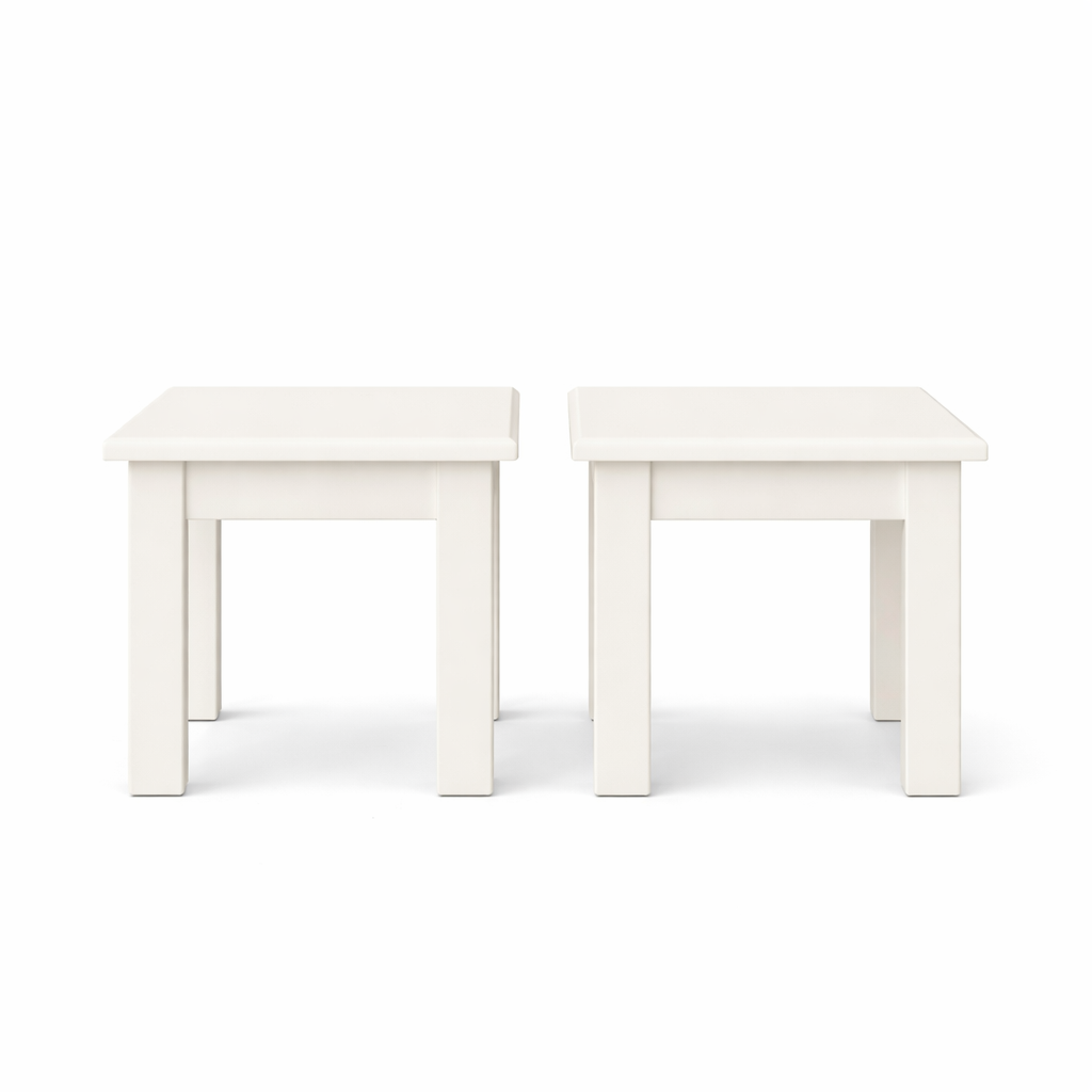 Uitgevoerd in RAL 9010 (zuiver wit) stralen de tafeltjes frisheid en tijdloze elegantie uit. Met hun compacte afmetingen van 50 x 50 x 50H cm zijn ze ideaal als salontafel, plantentafel of handig bijzettafeltje naast de bank of fauteuil. Dankzij het neutrale design passen ze moeiteloos in zowel moderne als landelijke interieurs.
