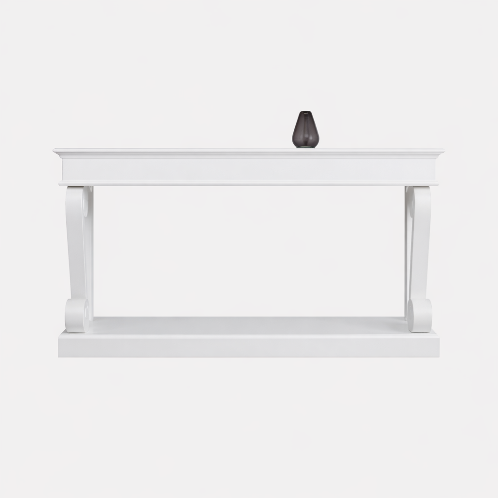 Deze klassieke sidetable is voorzien van een prachtige krul poot, waardoor de sidetable een klassieke uitstraling heeft. Met een breedte van 150cm biedt het voldoende ruimte om je favoriete decoratieve items tentoon te stellen. De tafel is leverbaar in alle RAL-kleuren, waardoor je deze perfect kunt afstemmen op jouw interieur.