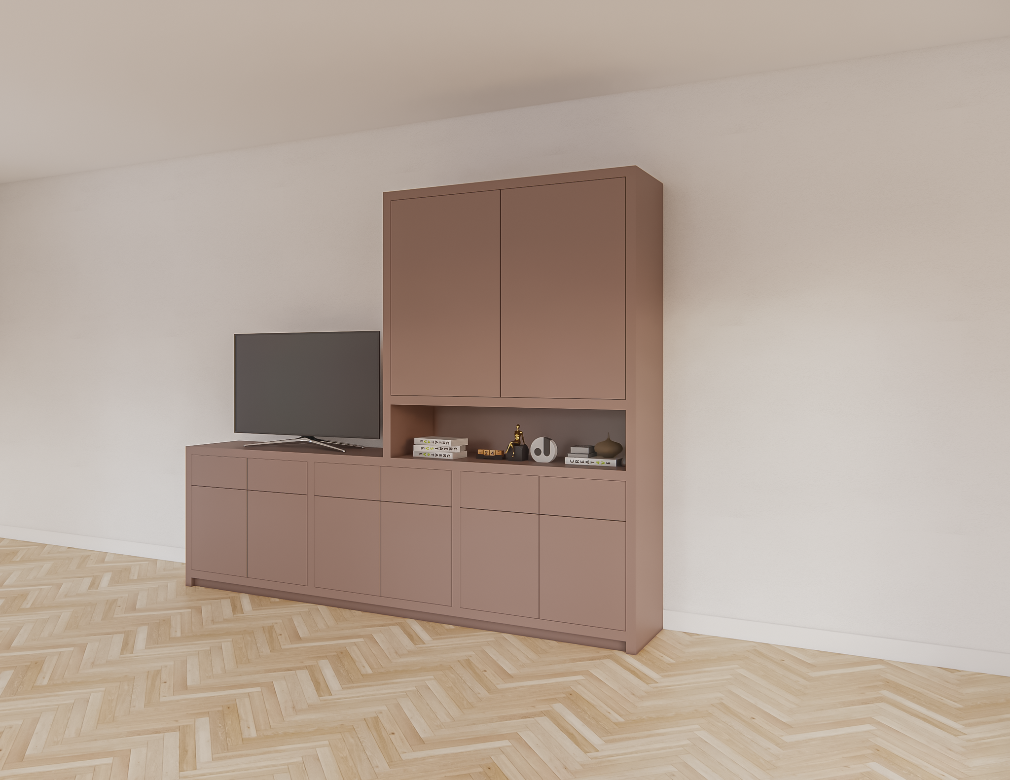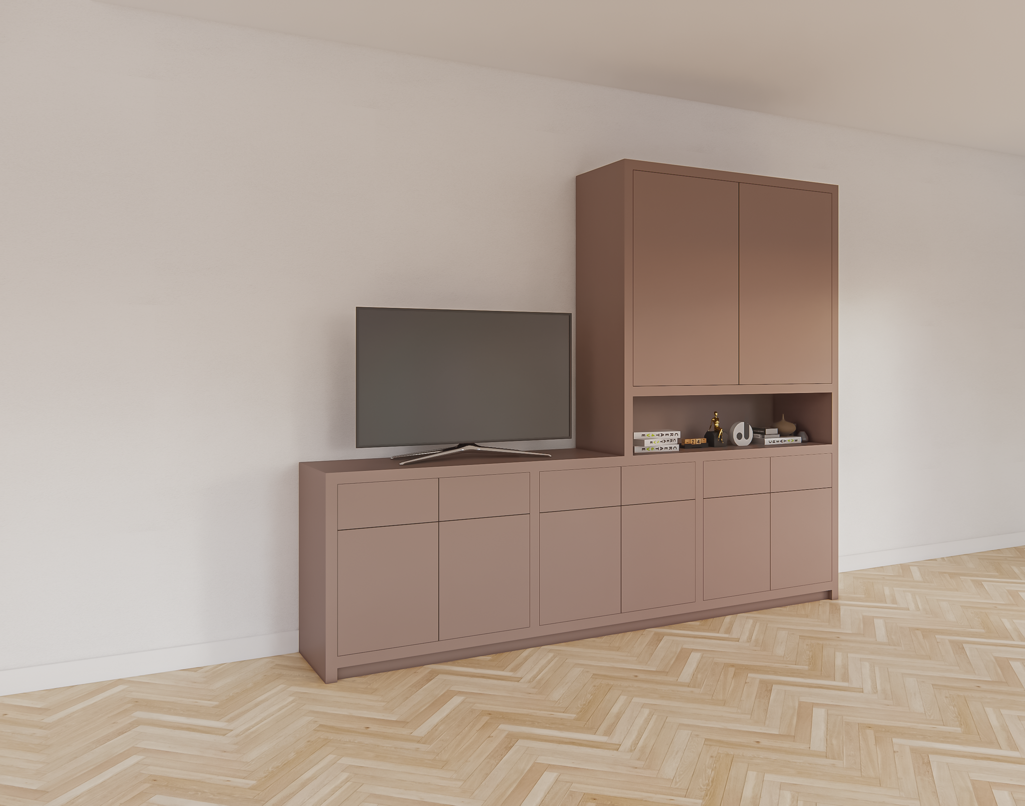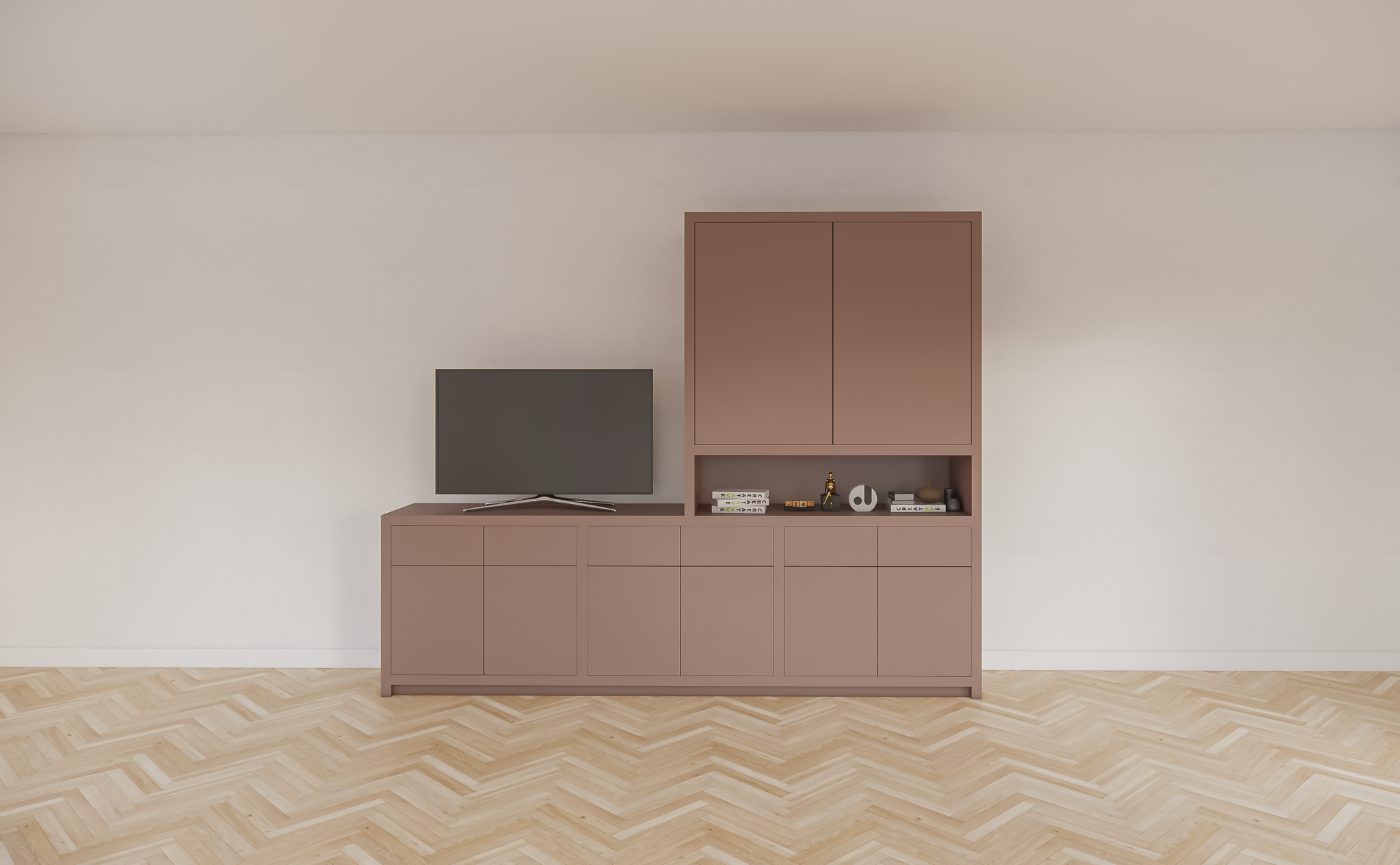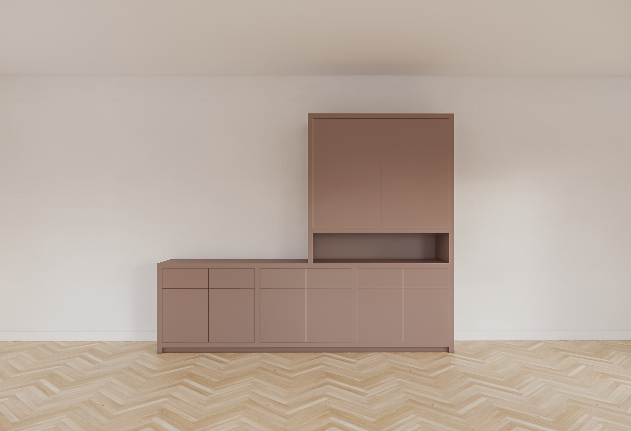 Het dressoir is verkrijgbaar in alle RAL- en NCS-kleuren, zodat je het volledig kunt afstemmen op jouw interieur. Of je nu kiest voor een neutrale tint, een gedurfde kleur of een houtafwerking, de mogelijkheden zijn eindeloos.