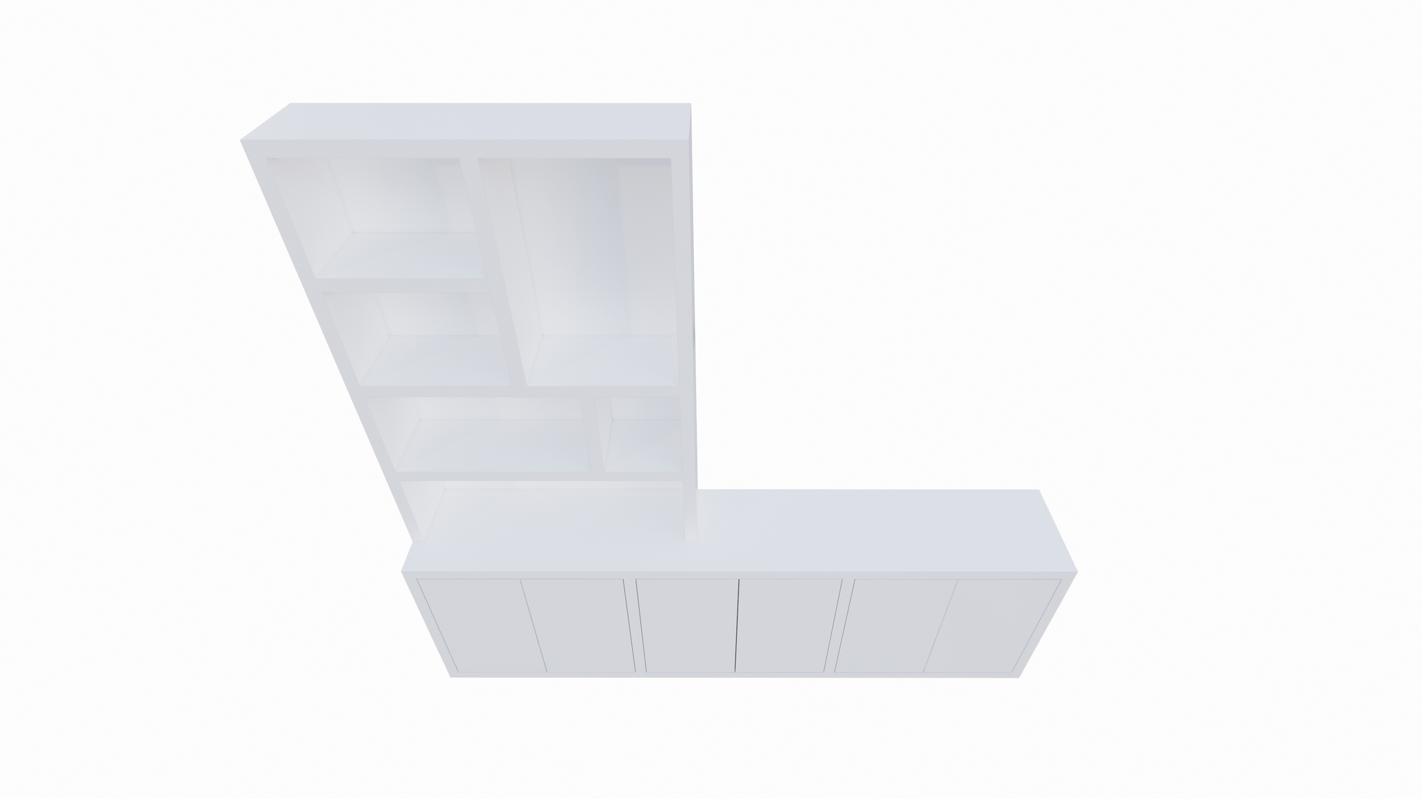Tv dressoir Royan - 275x30/45x255H cm - 6 push to open deuren - vakkenkast gedeelte - strakke afwerking