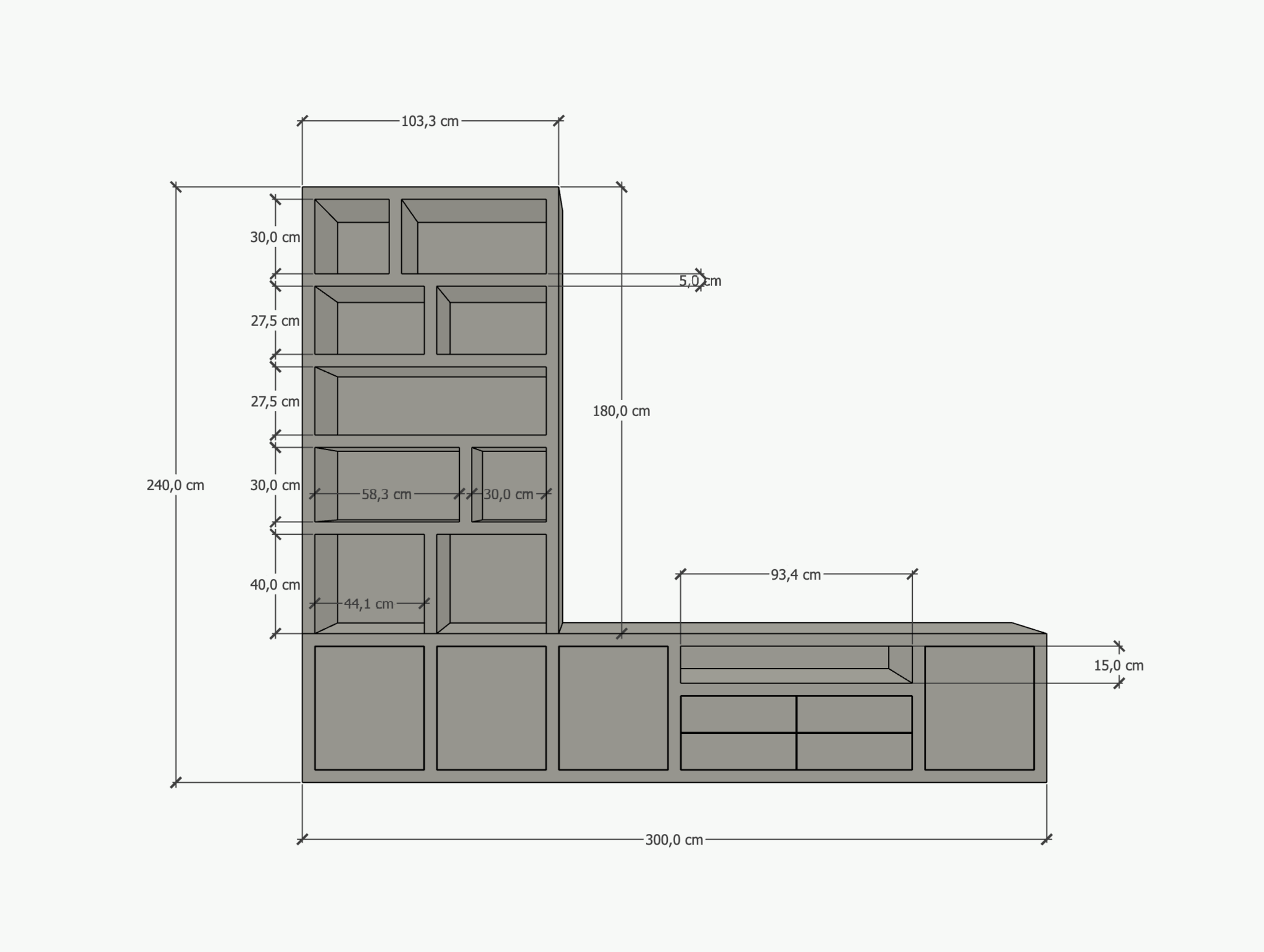 De TV vakkenkast dressoir Rennes is een prachtig en veelzijdig meubel dat functionaliteit en design perfect combineert. Met zijn royale afmetingen van 300x40x240H cm biedt het dressoir ruime opbergruimte, zonder dat het te zwaar of massief aanvoelt in de ruimte. Het dressoir is ideaal voor het opbergen van media-apparatuur, boeken of decoratieve items, en het voegt tegelijkertijd een stijlvolle uitstraling toe aan je interieur.