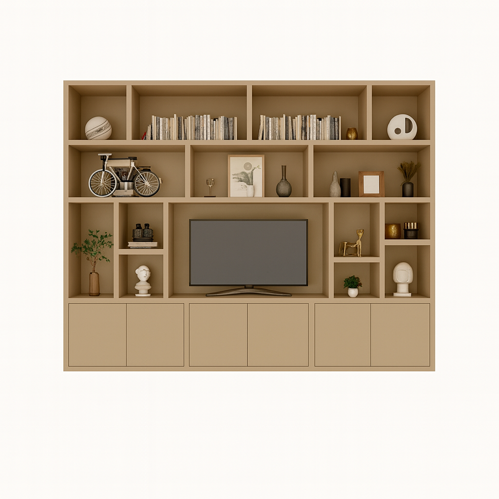 Tv vakkenkast Osaka - 400x40x255H cm - 15 open vakken - 6 push to open deurtjes - cinewall - tv vak - strak design - demontabel - 5cm plank dikte