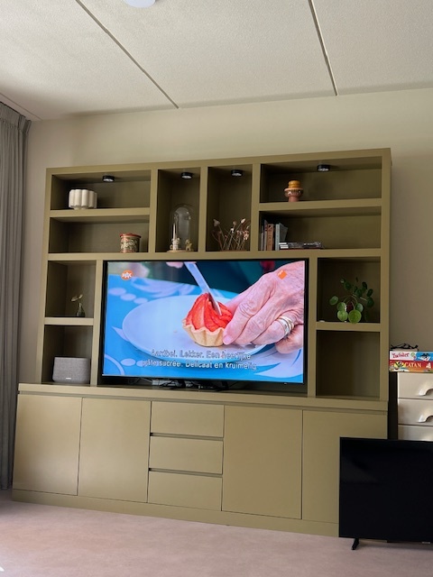 De onderzijde van de kast is voorzien van vier push-to-open deuren en drie soft-close lades. Dit zorgt voor een rustige, greeploze afwerking en verhoogt het gebruiksgemak. Alles wat je liever uit het zicht houdt – denk aan apparatuur, kabels, spelcomputers of papieren, berg je eenvoudig en netjes op in het onderste deel van de kast.