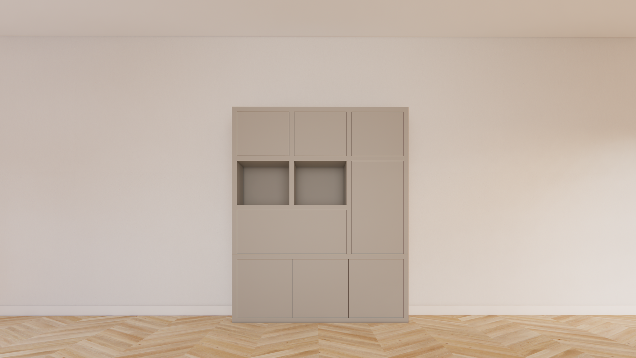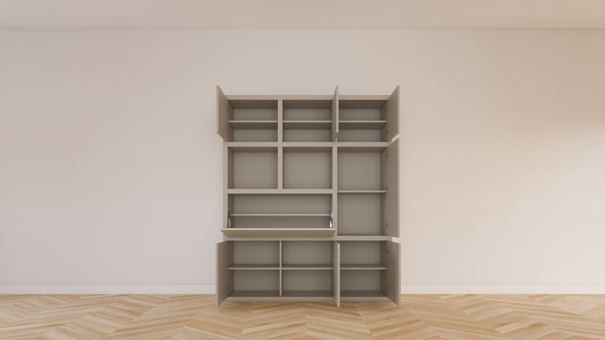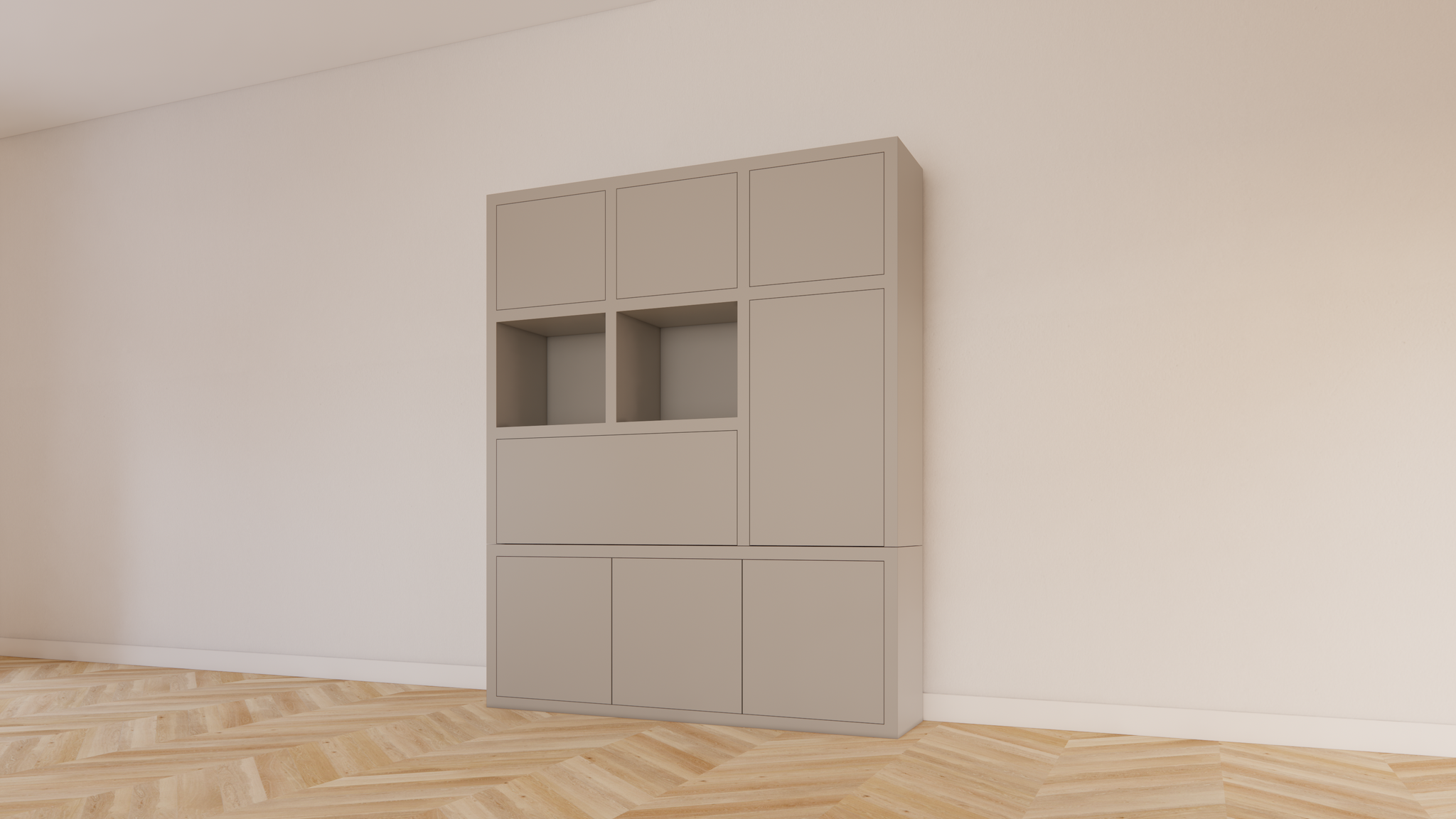 Vakkenkast Bonaire - 150x35x240H cm - push to open deuren - klep deur - open vakken - strakke afwerking