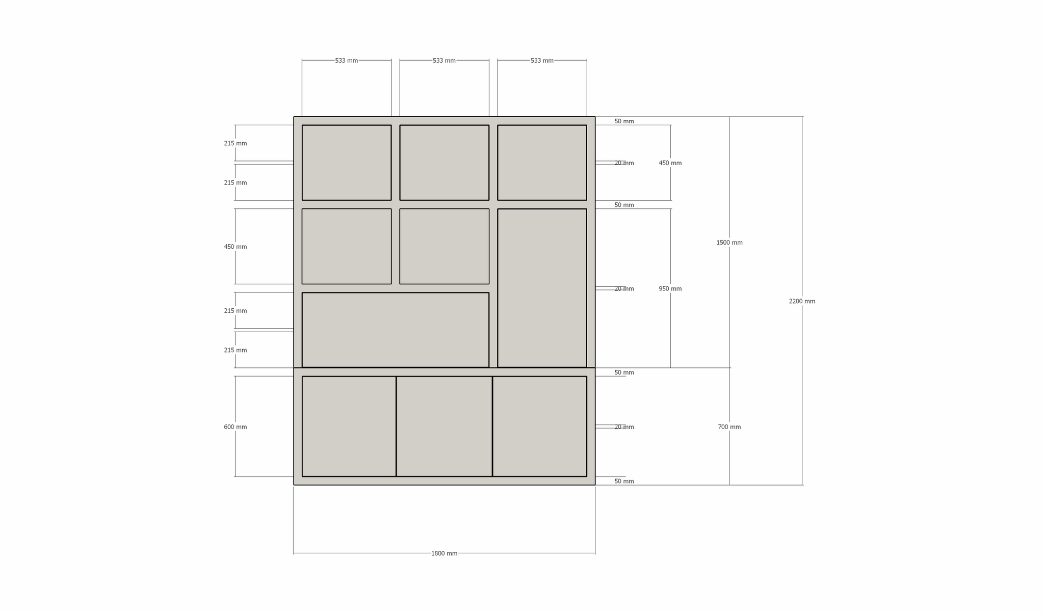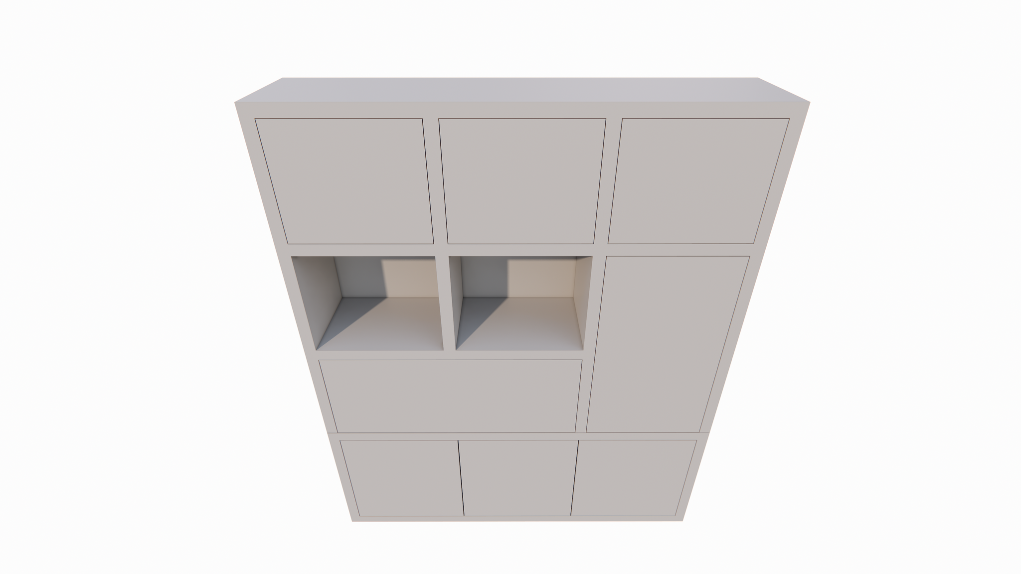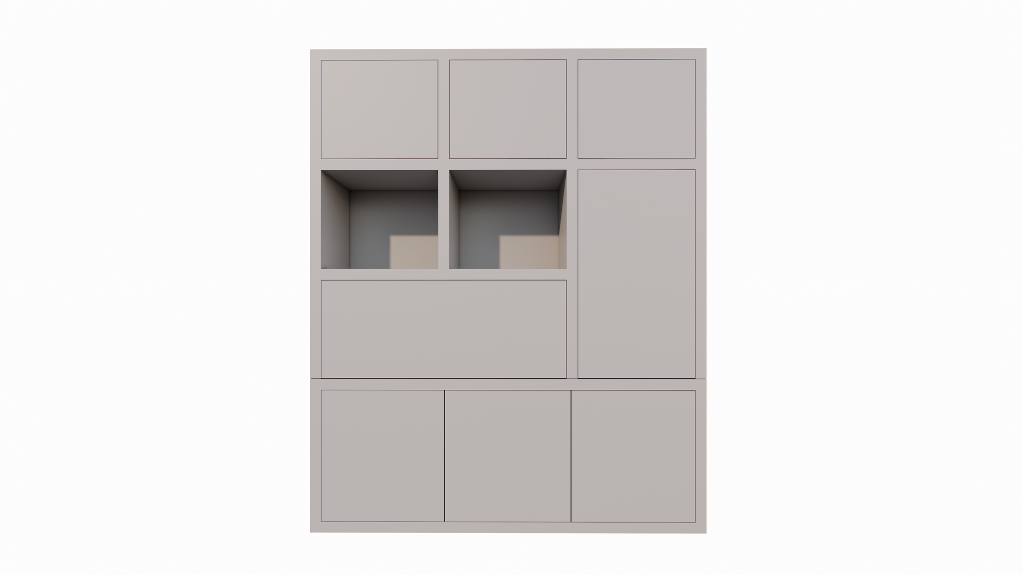 Vakkenkast Bonaire - 150x35x240H cm - push to open deuren - klep deur - open vakken - strakke afwerking