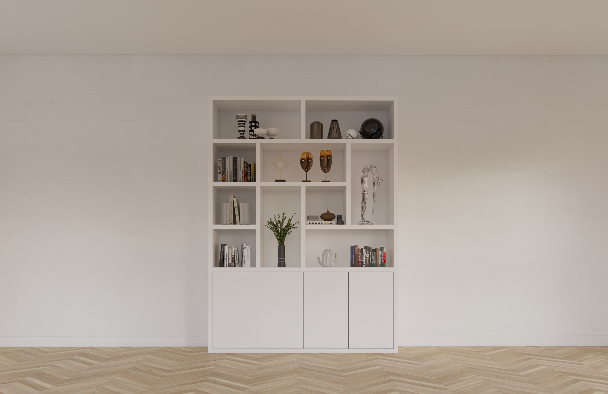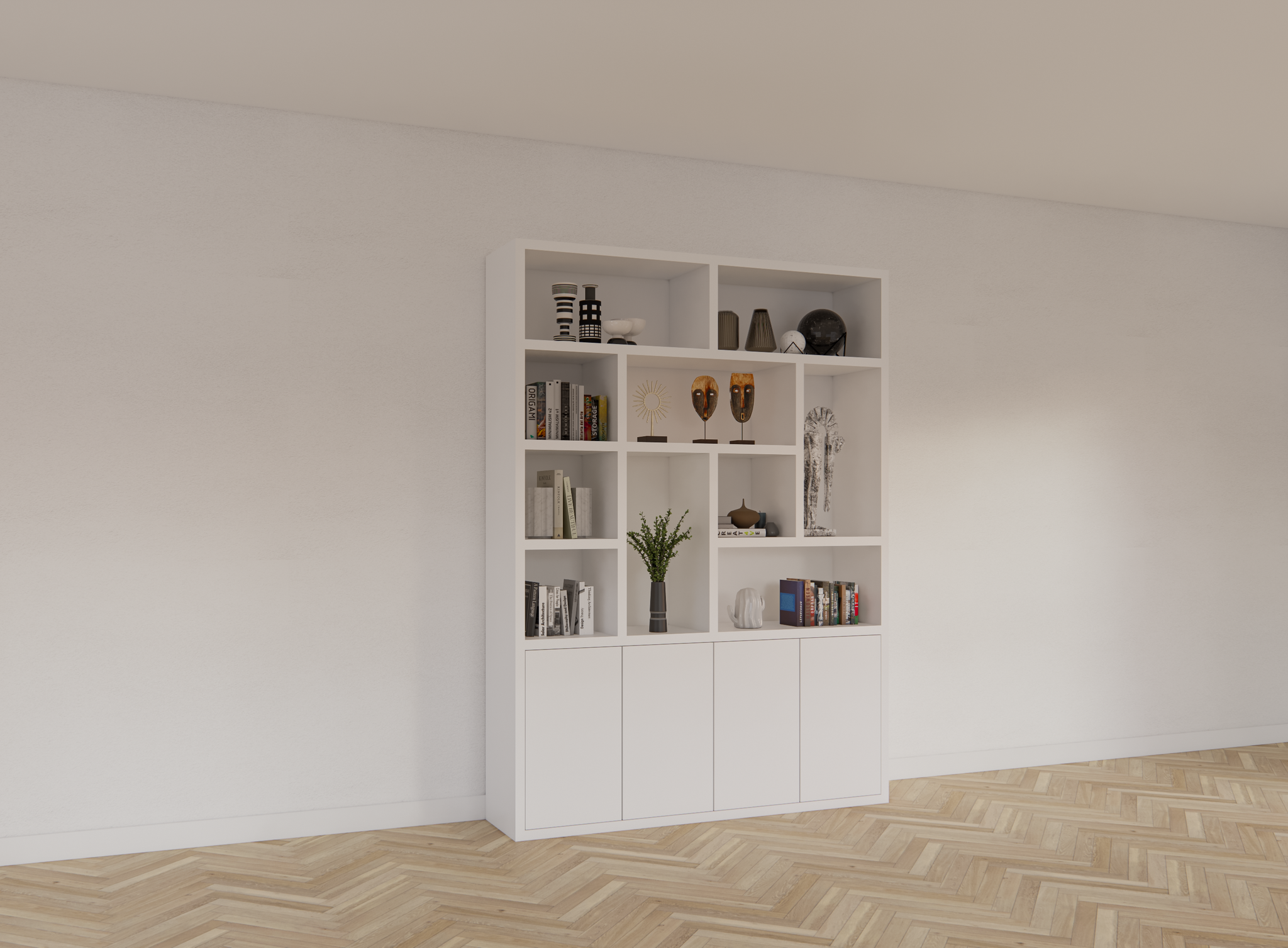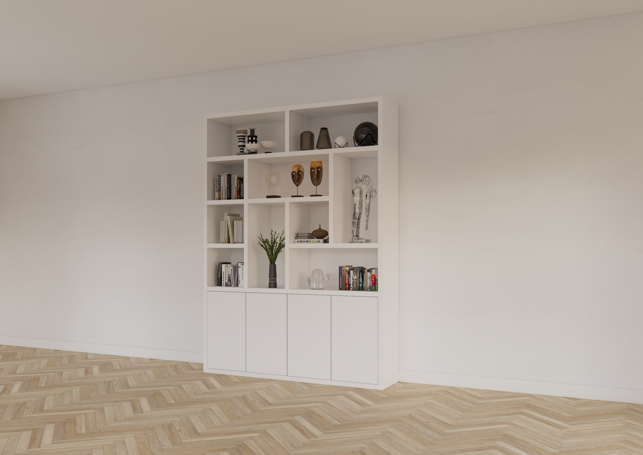 Kortom, de Vakkenkast Dinan combineert moderne esthetiek, robuustheid en functionaliteit in één design. Of je nu op zoek bent naar een opbergruimte voor je woonkamer, kantoor of slaapkamer, deze kast biedt een flexibele en stijlvolle oplossing die volledig op maat gemaakt kan worden.