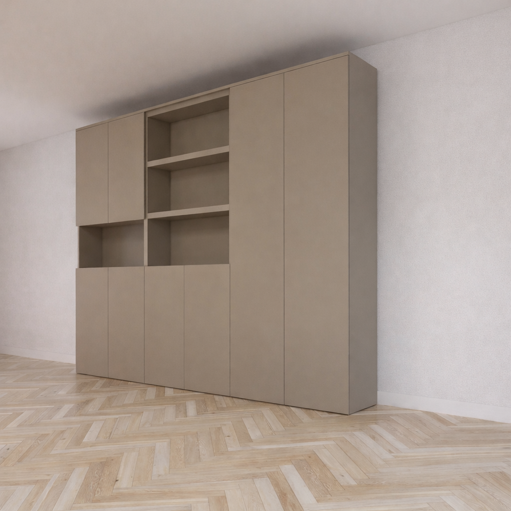 De kast kan volledig worden aangepast aan jouw interieurwensen, omdat hij beschikbaar is in alle RAL- en NCS-kleuren. Of je nu op zoek bent naar een subtiele neutrale tint of een opvallende kleur die eruit springt, de Huete kast kan precies afgestemd worden op jouw smaak. Bovendien is maatwerk mogelijk, zodat je de afmetingen en indeling van de kast kunt aanpassen aan de specifieke eisen van jouw ruimte. Dit maakt de kast niet alleen veelzijdig, maar ook uniek en persoonlijk.