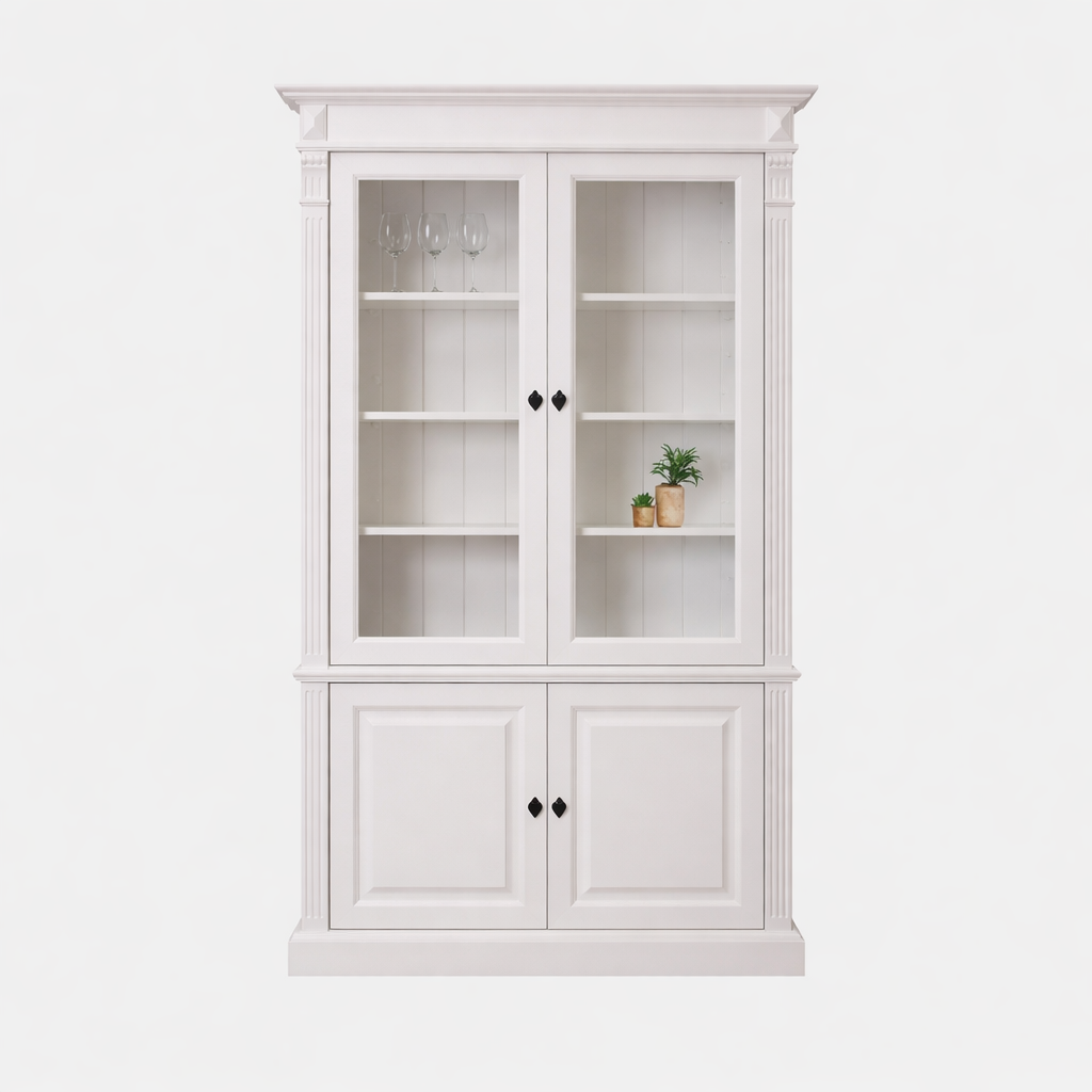 Vitrinekast Breda - 120x40x200H cm - 2 vitrine scharnierdeuren - 2 dichte scharnierdeuren