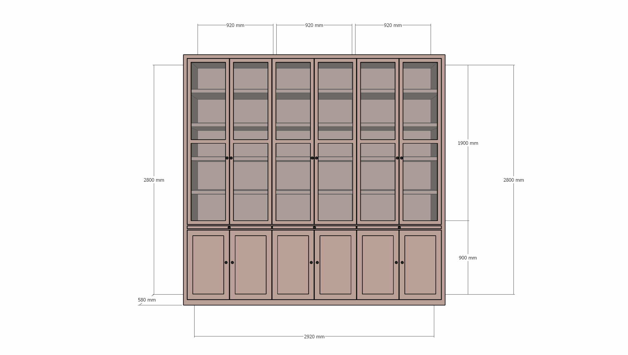 Onderin vind je een rij gesloten deuren, perfect om alles wat je liever uit het zicht houdt netjes op te bergen.