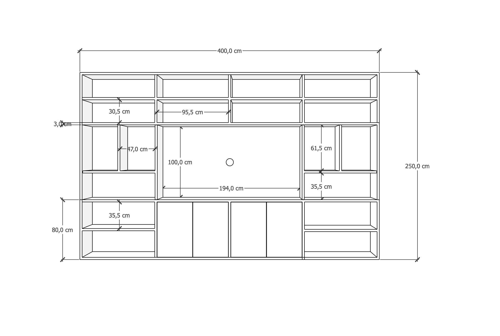 Voorraad (Beschadigd) TV-vakkenkast Winterberg 04 - 400x40x250H cm - kleur NCS S 3010 G 10Y