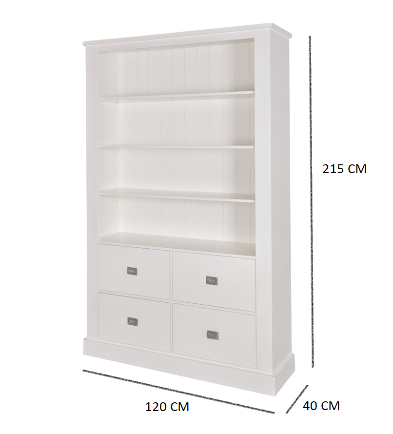 De boekenkast Iceland 10 is direct uit voorraad leverbaar en verkeert nog nieuw in de verpakking. De kast heeft een rustige, landelijke uitstraling met verticale schrootpanelen, drie verstelbare planken en vier ruime softclose-lades voor extra opbergruimte.