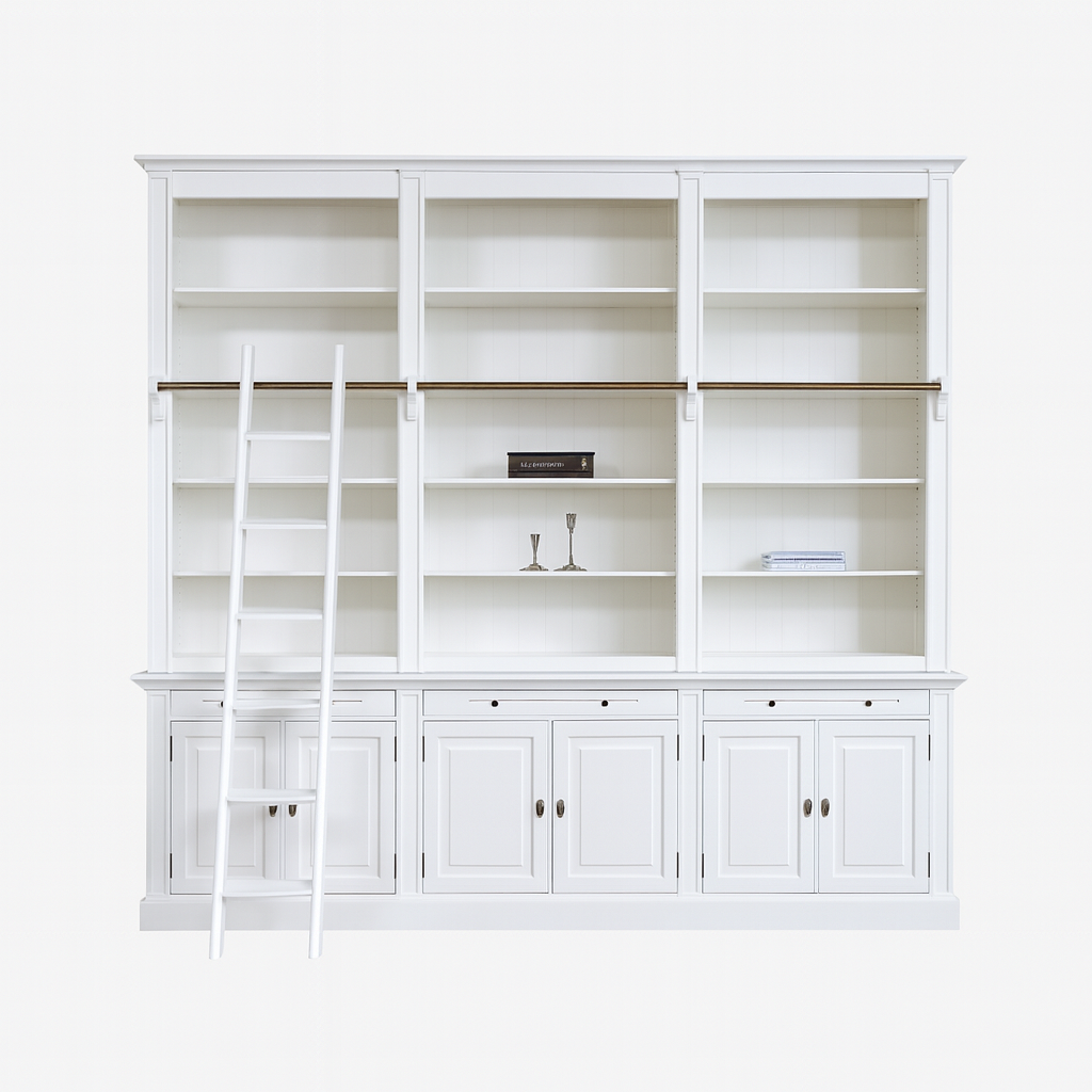 Voorraad Boekenkast Melena del Sur - 300x40x240H cm - RAL 9001 - met stang en ladder - 15 planken - 3 uitschuif planken - 6 dichte scharnierdeuren - verstelbare planken - Demontabel
